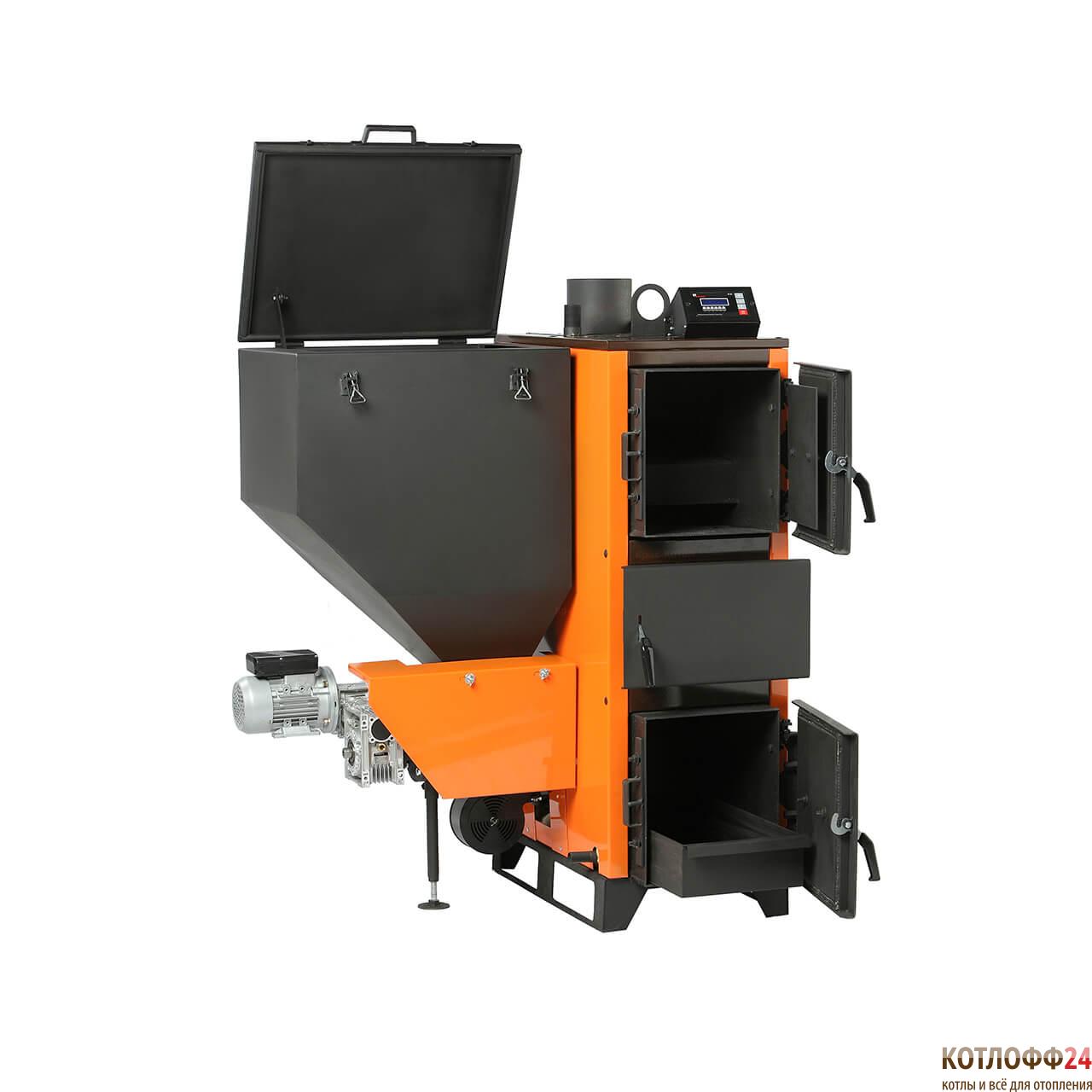 - Возможность установки бункера увеличенного объема (увеличивает автономность работы котла на одной загрузке).