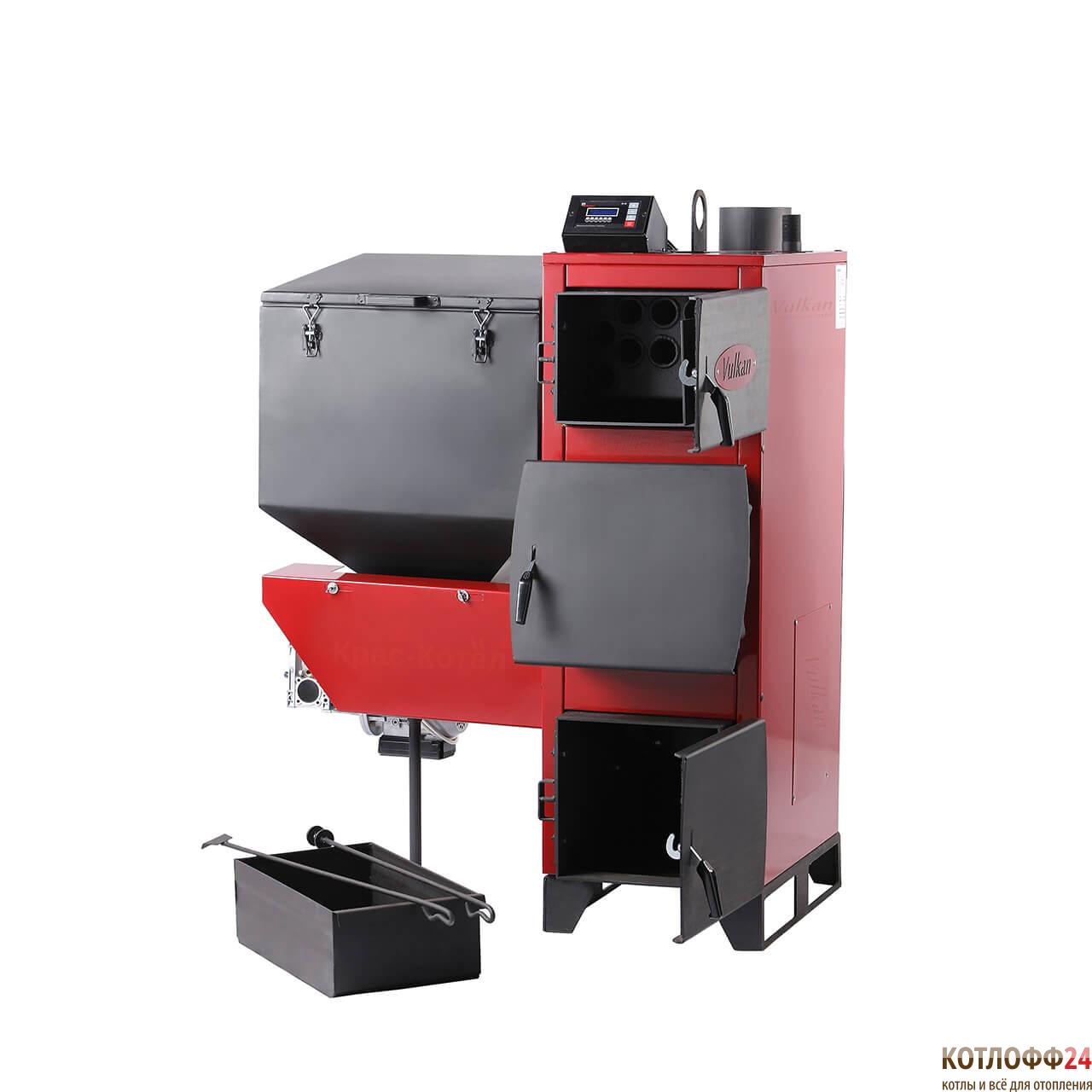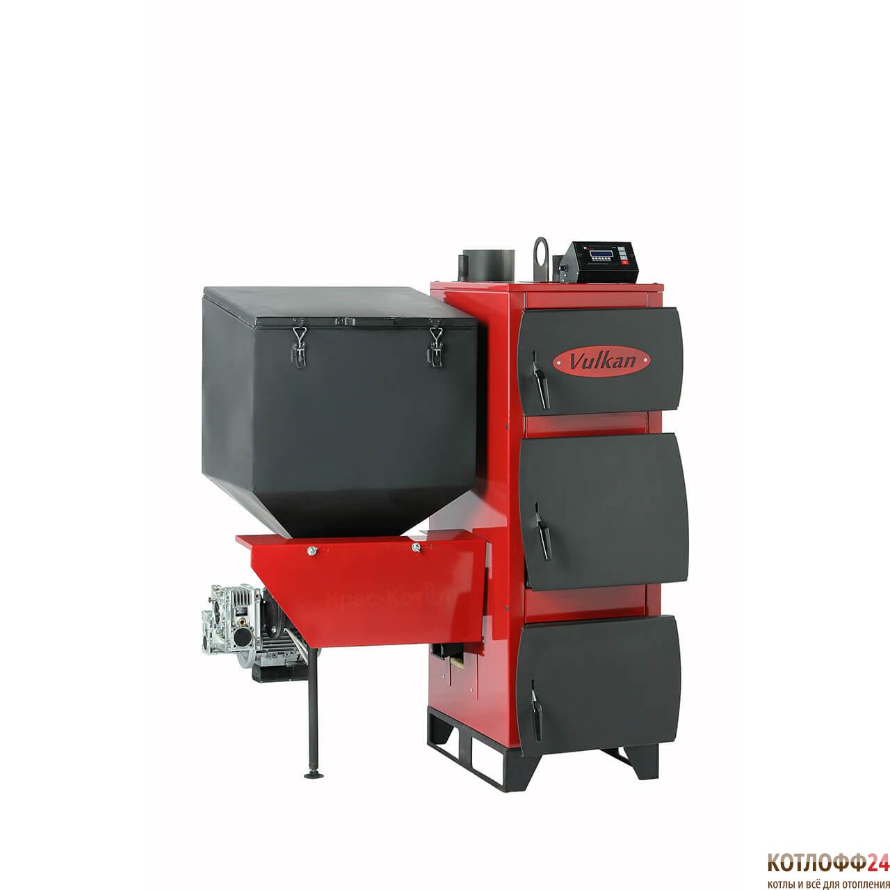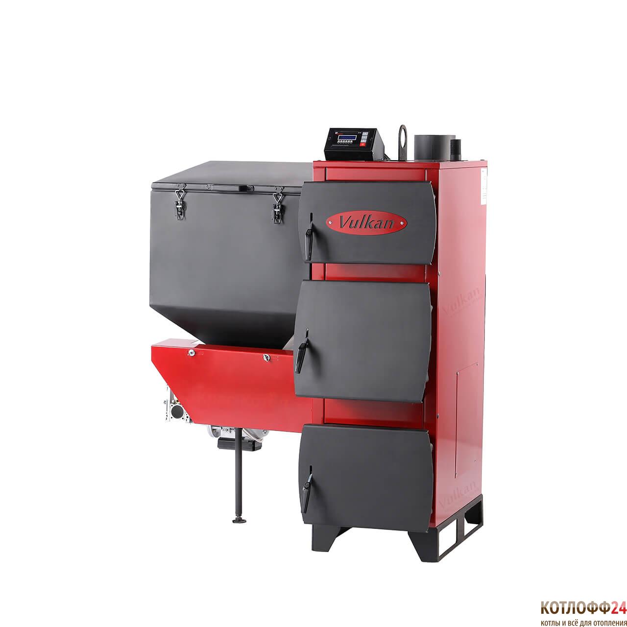 Универсальный автоматический котел Vulkan работает на твердом топливе: фракционный уголь и пеллеты. Идеально подходит для отопления домов и производственных помещений (от 70 до 1500 кв.м.).