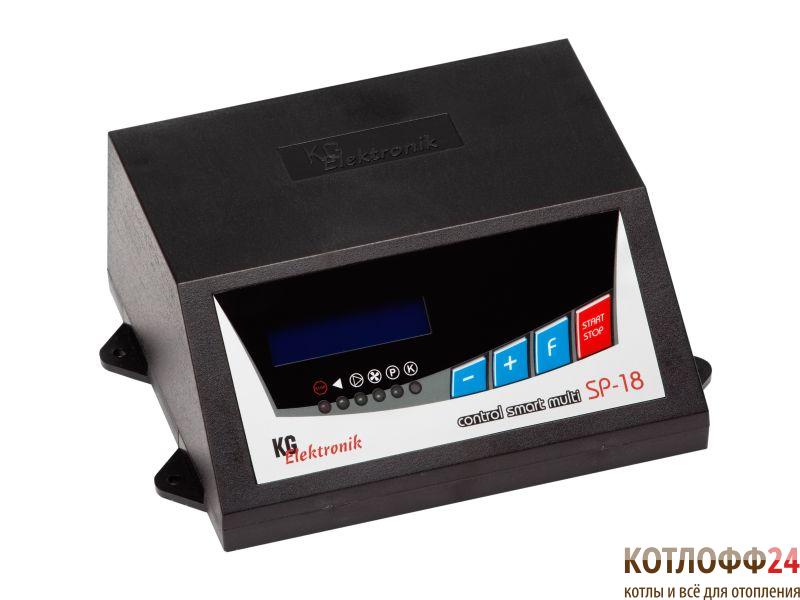 Контроллер типа SP-18 управляет работой нагнетательного вентилятора, насосов ЦО, ГВС и подачи топлива.