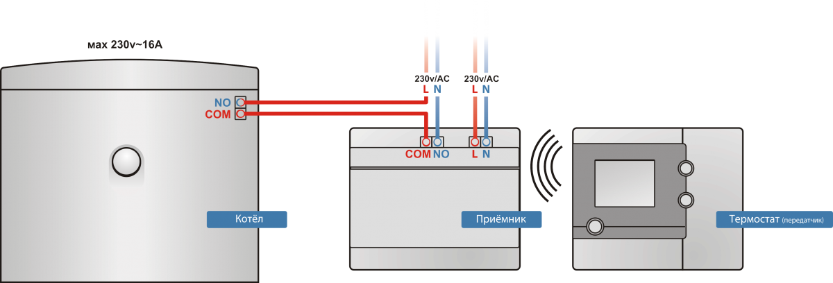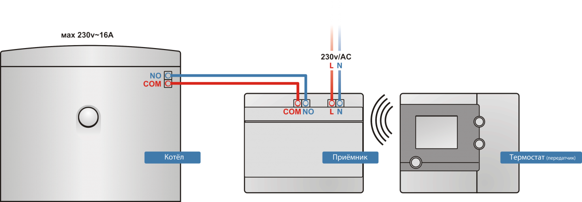 - Размеры термостата: В-95мм, Ш-130мм, Г-40мм