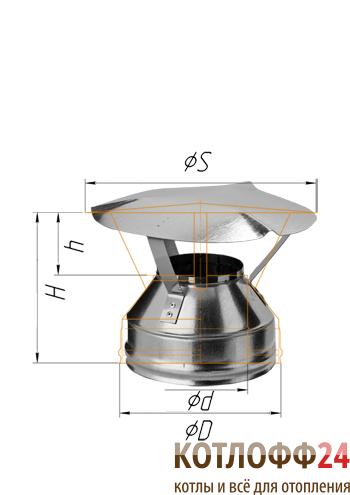 Является завершающим элементом дымового канала, используется для предохранения двустенного дымохода от атмосферных осадков, а также закрывает слой теплоизоляции.