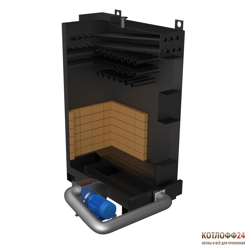 Теплообменник котла изготовлен из высококачественной стали 09Г2С толщиной 6 мм и решетки охлаждения, выполненного из бесшовной котельной трубы. Чтобы свести к минимуму теплопотери, котел изолирован минеральной ватой и закрыт декоративным кожухом.