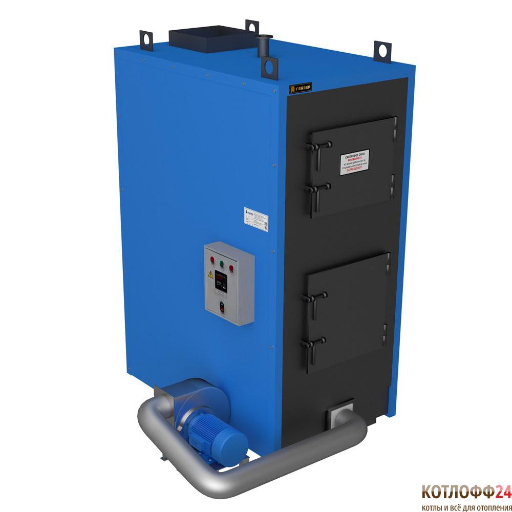 Все котлы Гейзер линейки ДГ на заводе комплектуются электронным блоком автоматики, частотным вентилятором нагнетания воздуха, что позволяет работать котлу до 24 часов на одной закладке топлива в максимально экономичном режиме. Чтобы повысить эффективность работы котла, а также обеспечить оптимальный процесс горения топлива топка котла оснащена системой многоточечной подачи воздуха в зону горения. Продуманная конструкция этого котла характеризуется большими загрузочными дверцами и большой камерой сгорания, которая оснащена подвижными водонаполненными колосниковыми решетками, предназначенными для удаления золы.