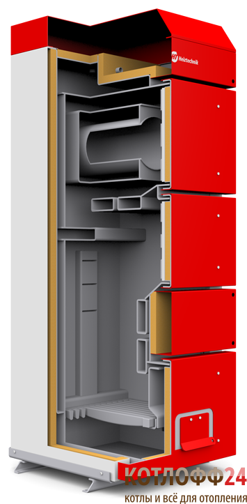 Котел имеет большой отсек, который может вместить за одну загрузку значительное количество топлива, для длительной работы котла. Топливо загружается через большую загрузочную дверцу. Все операции, включая чистку теплообменника происходят с передней части котла, что облегчает его использование.
