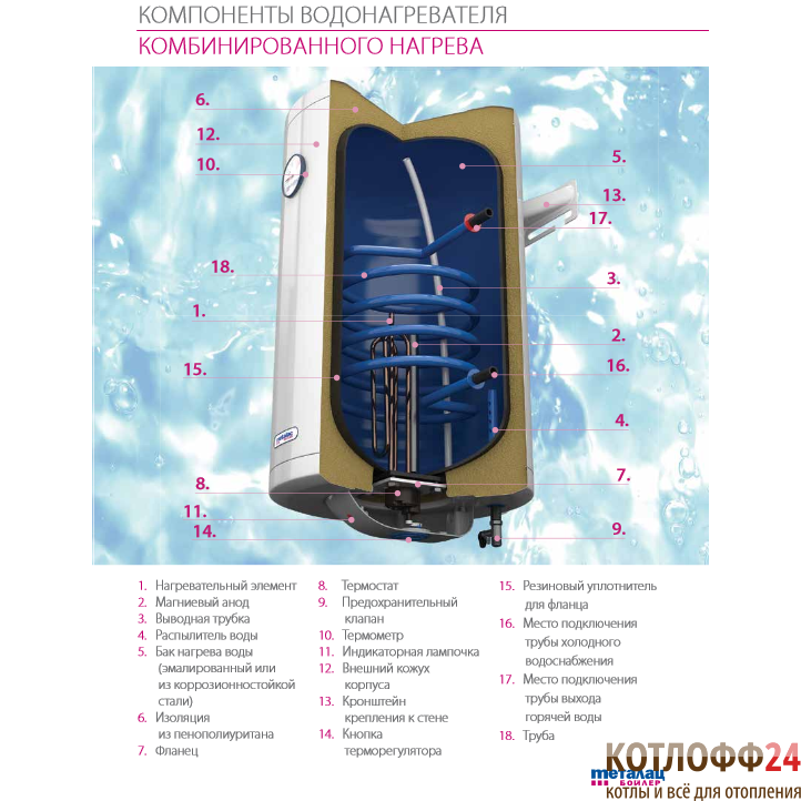 • Бак изолирован качественной полиуретановой изоляцией, обеспечивающей сохранение тепла воды на продолжительный период