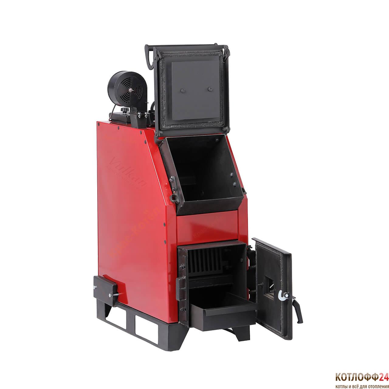 - Для работы котла используется вентилятор поддува и электронный контроллер, благодаря этому достигается более эффективное сжигание топлива, чем на классических котлах, и длительность горения достигает 24 часов (в полуавтоматическом режиме).