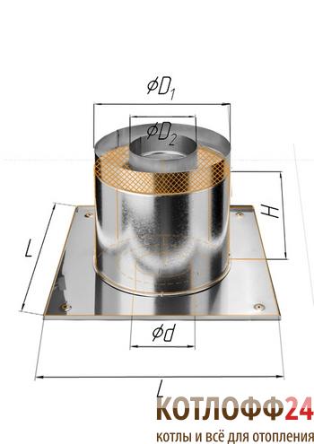 Предназначен для прохода дымохода через стеновые и потолочные перекрытия. Имеет дополнительную изоляцию и пожаробезопасность.