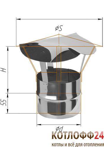 Используется для защиты одностенного дымоход от атмосферных осадков, является завершающим элементом системы дымоотведения.
