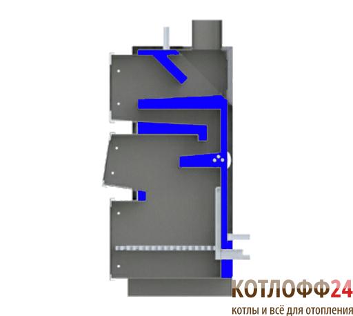 Горение топлива происходит на чугунной колосниковой решетке, либо на водонаполнееной (на моделях 32-45 кВт).