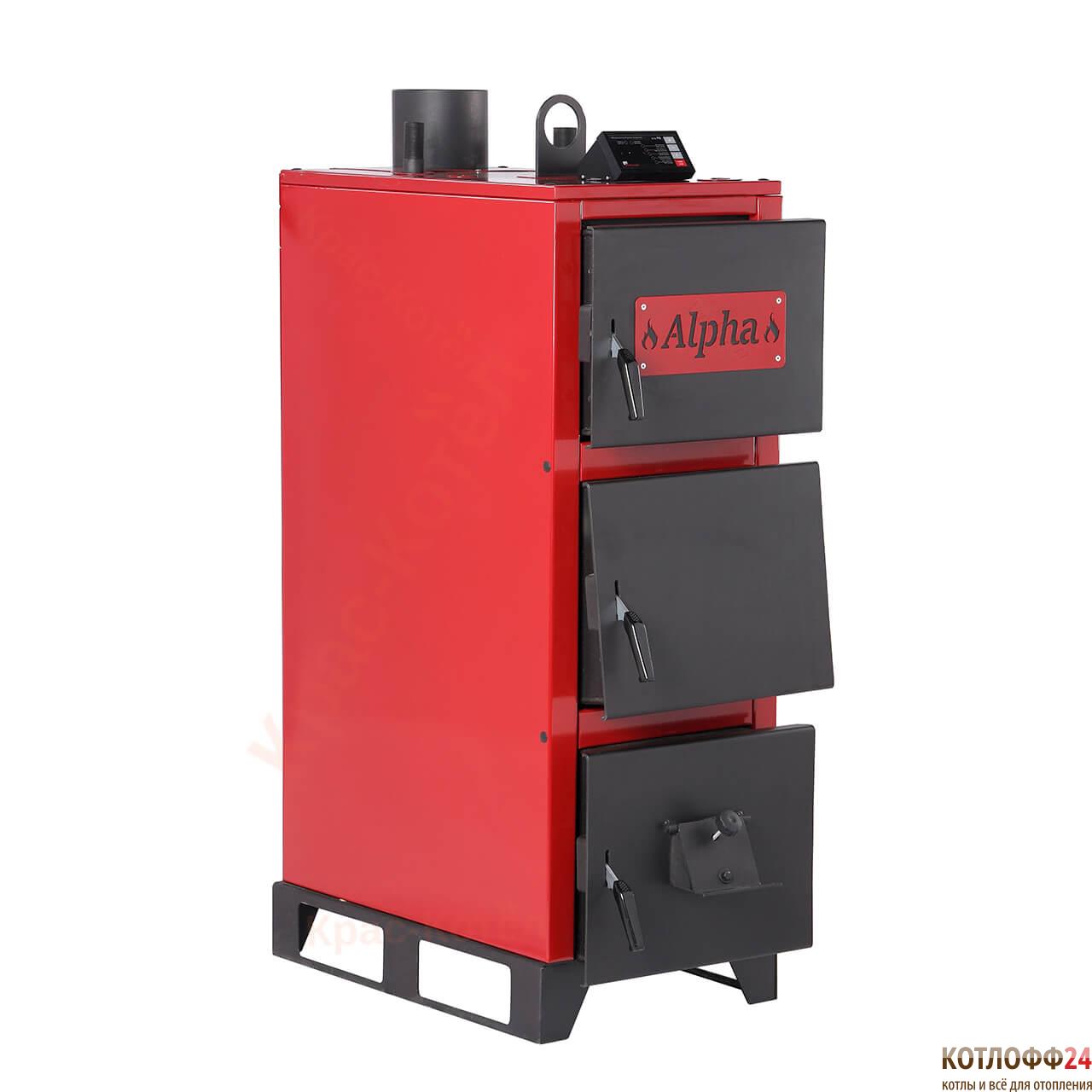 Котлы Альфа оснащаются вентилятором наддува и контроллером, что позволяет достичь более высокого КПД (82-86%).