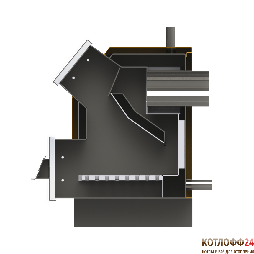 - Корпус котла изготовленно из высококачественной котельной стали марки 09Г2С.
